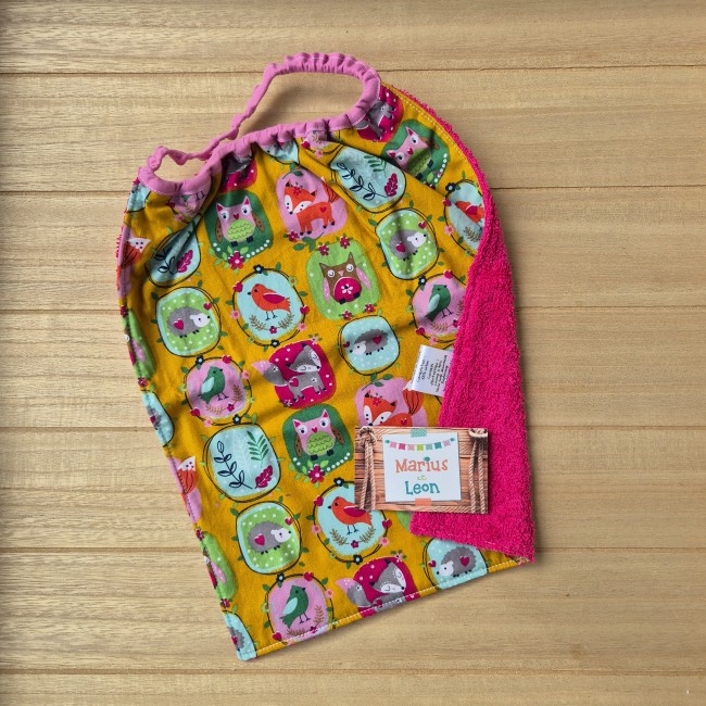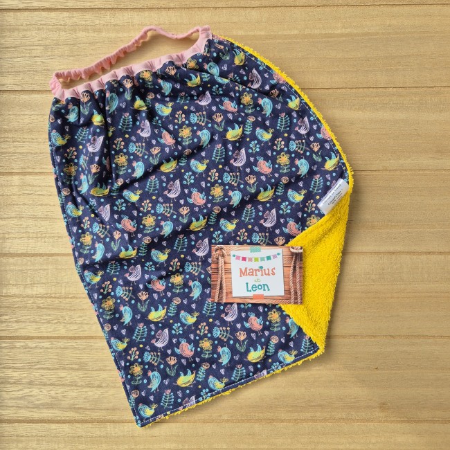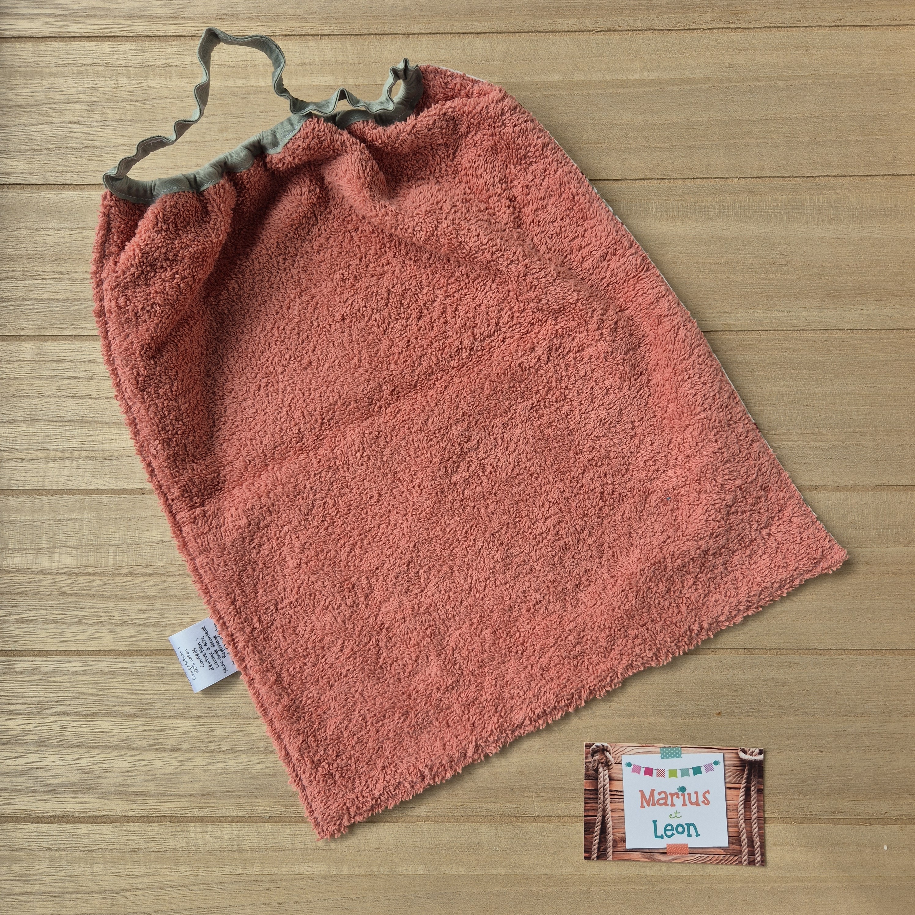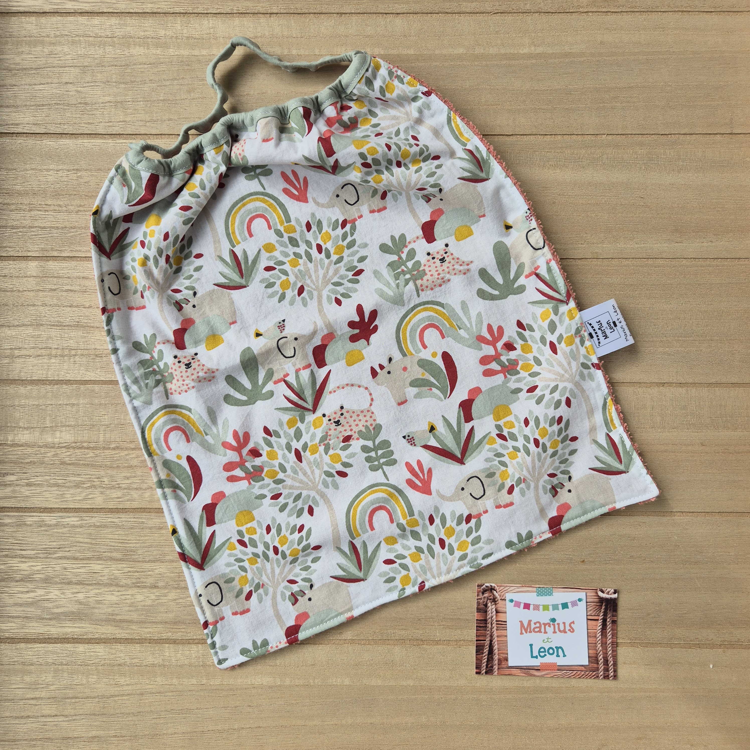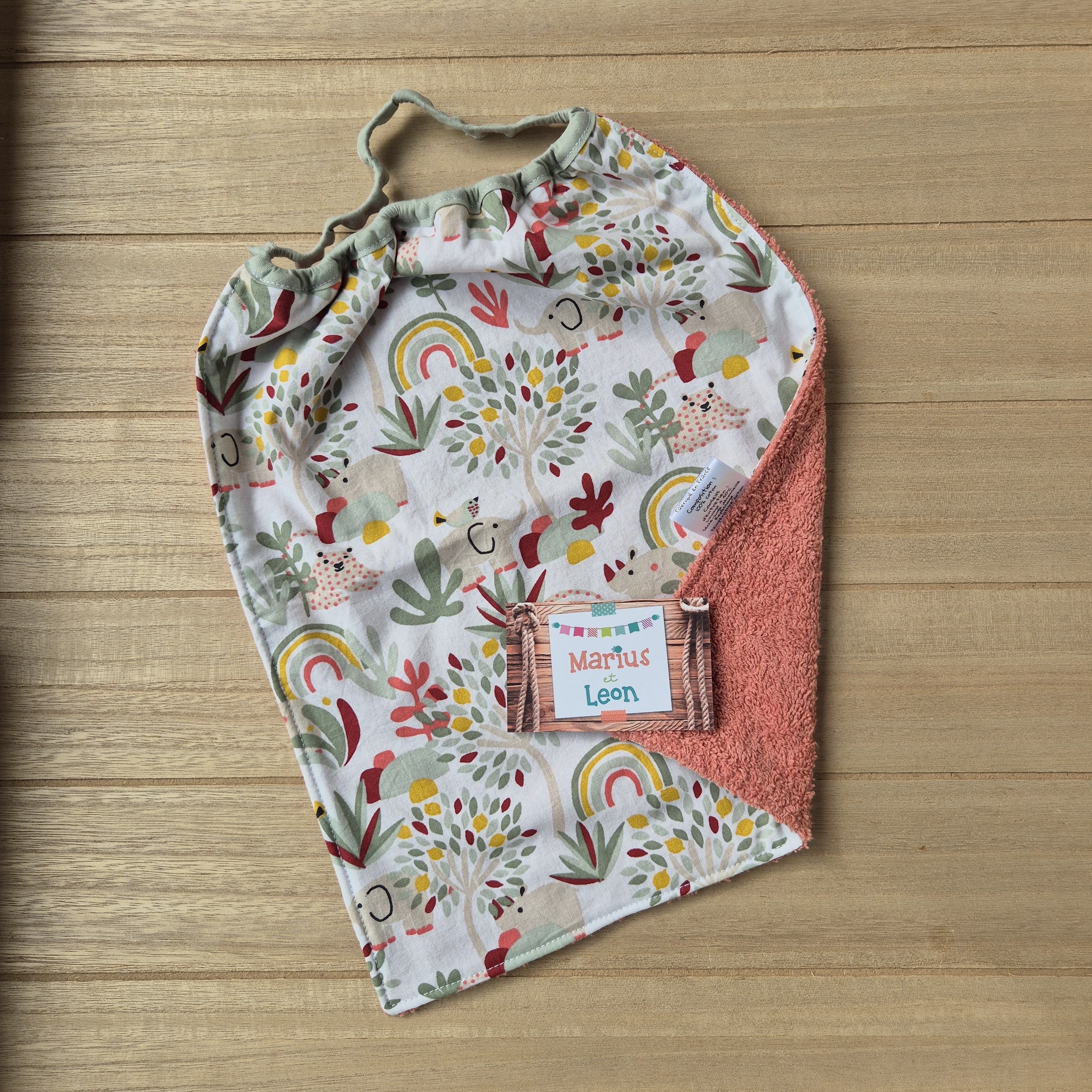 Tissu imprimé et tissu éponge : 100% coton, certifiés exempts de substances nocives pour la santé ou l'environnement.