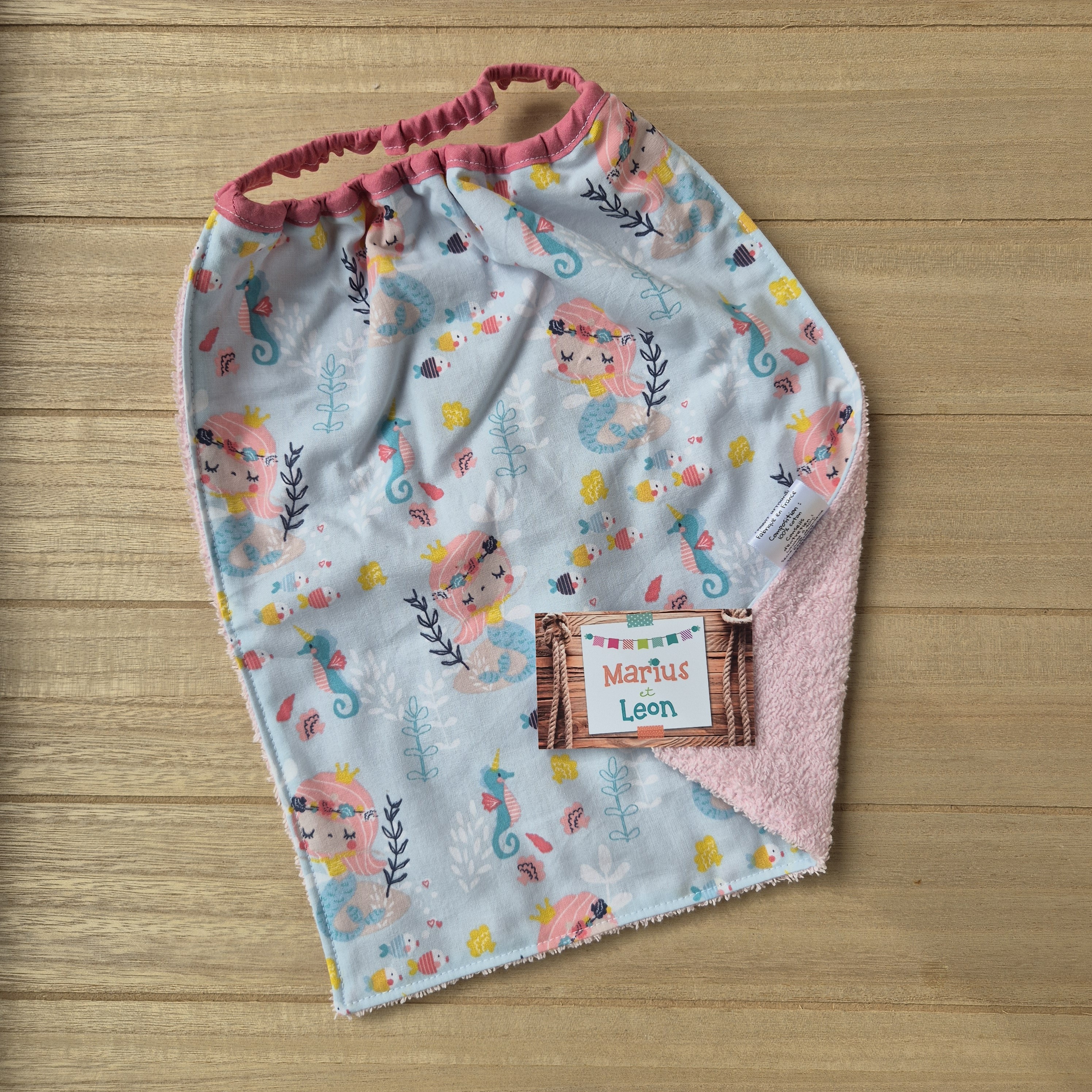 Tissu imprimé et tissu éponge : 100% coton, certifiés exempts de substances nocives pour la santé ou l'environnement.