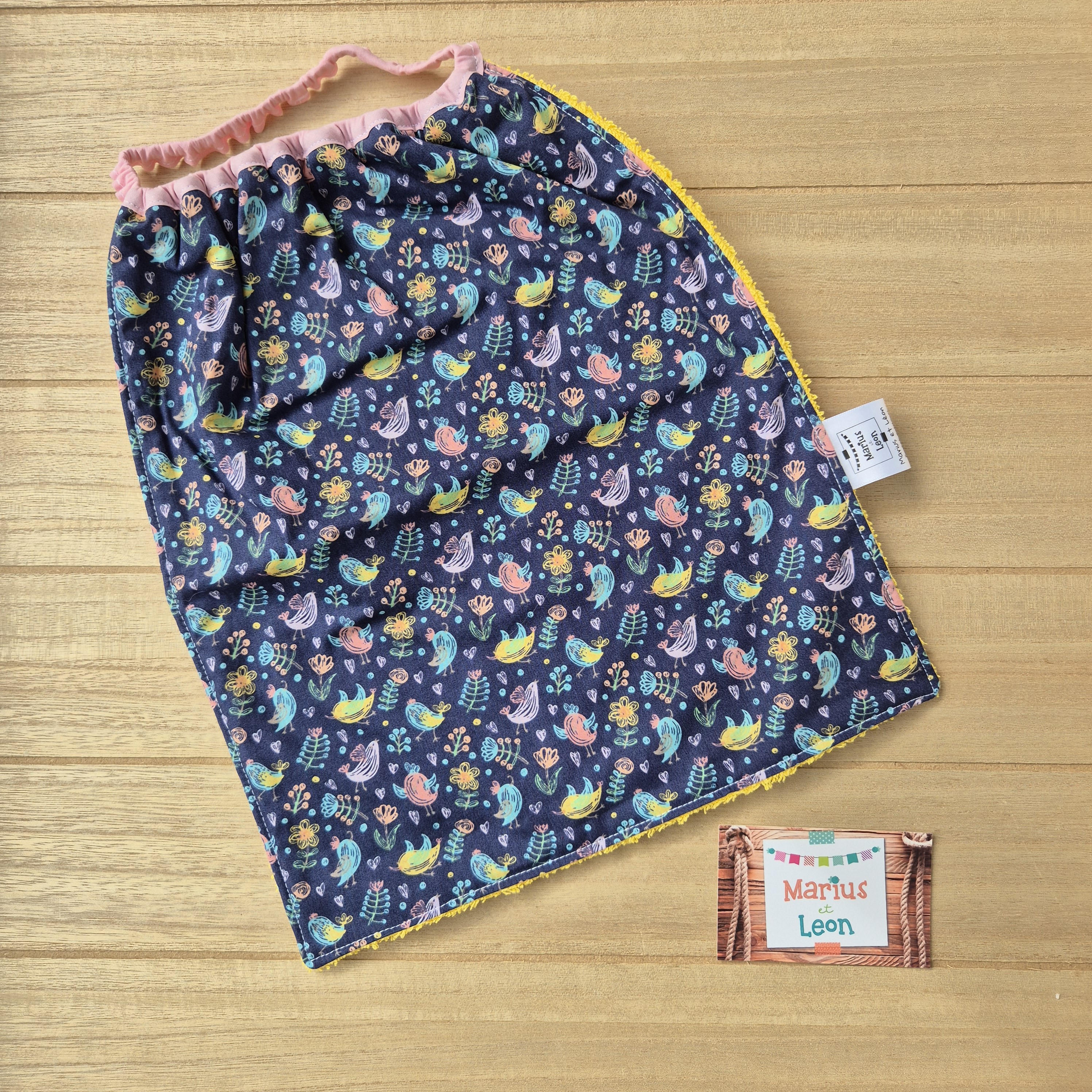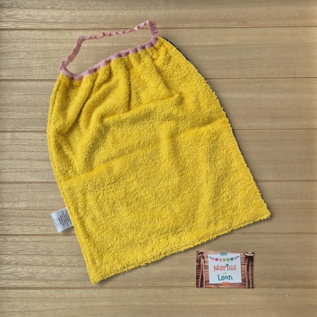 Tissu imprimé et tissu éponge : 100% coton, certifiés exempts de substances nocives pour la santé ou l'environnement.