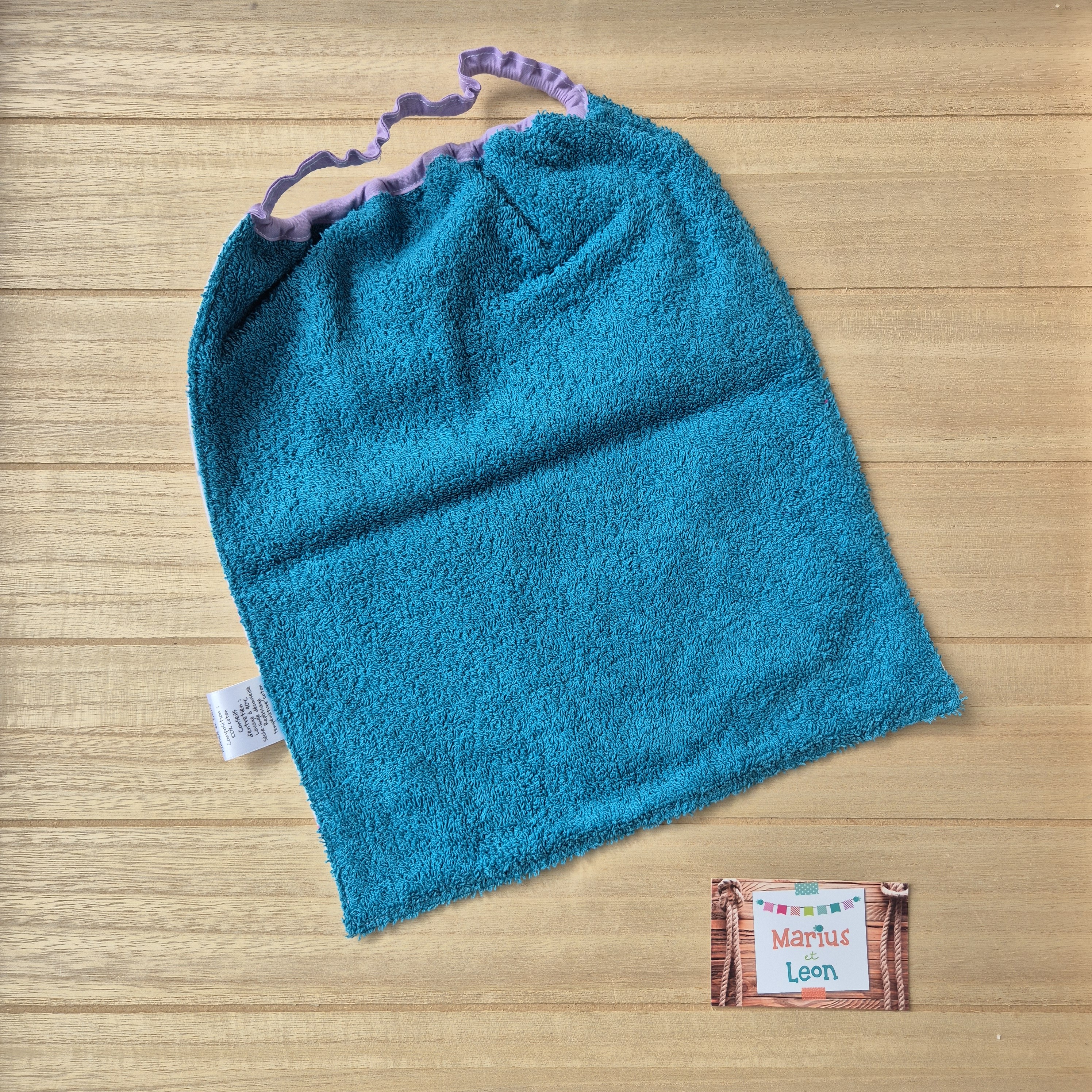 Tissu imprimé et tissu éponge : 100% coton, certifiés exempts de substances nocives pour la santé ou l'environnement.