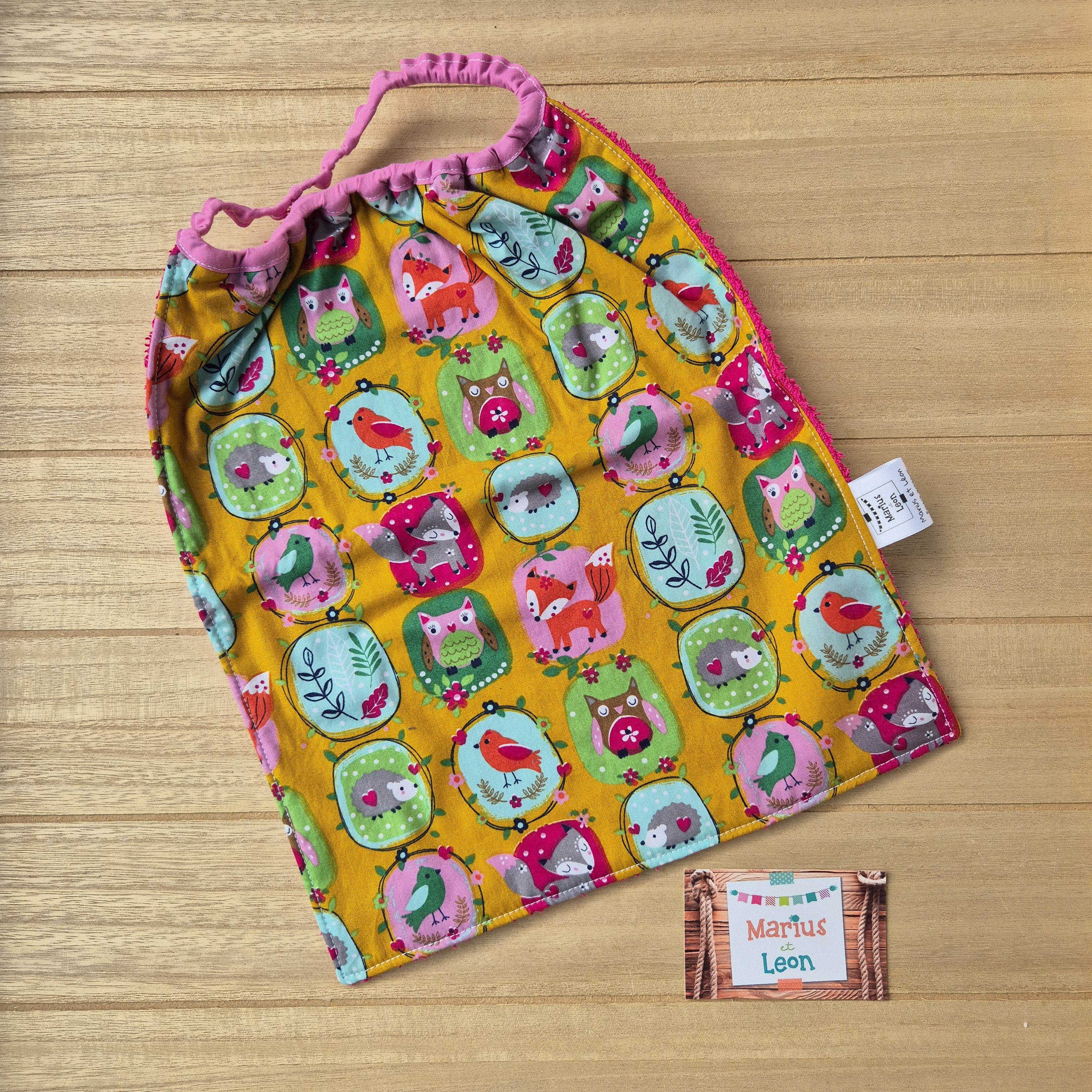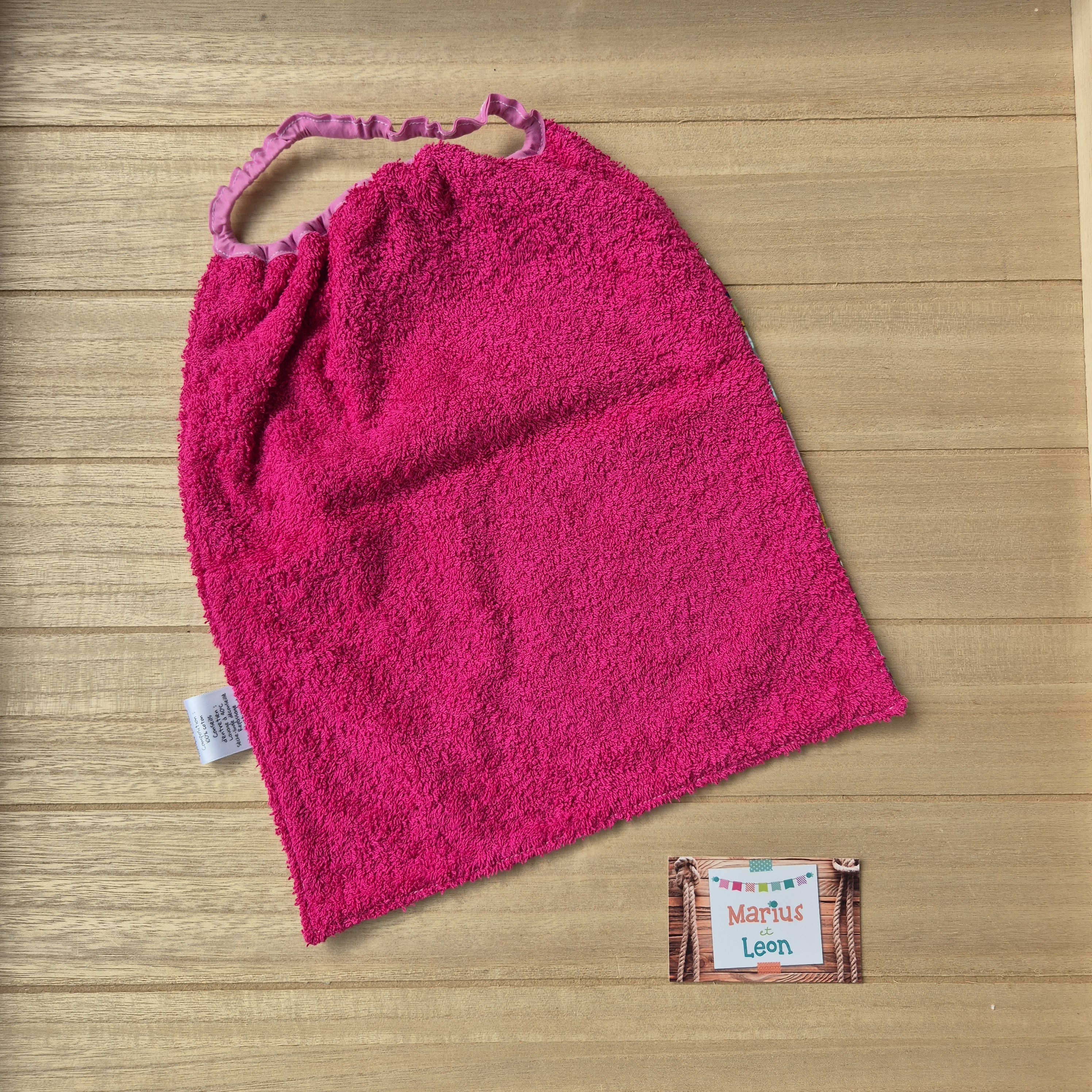 Tissu imprimé et tissu éponge : 100% coton, certifiés exempts de substances nocives pour la santé ou l'environnement.